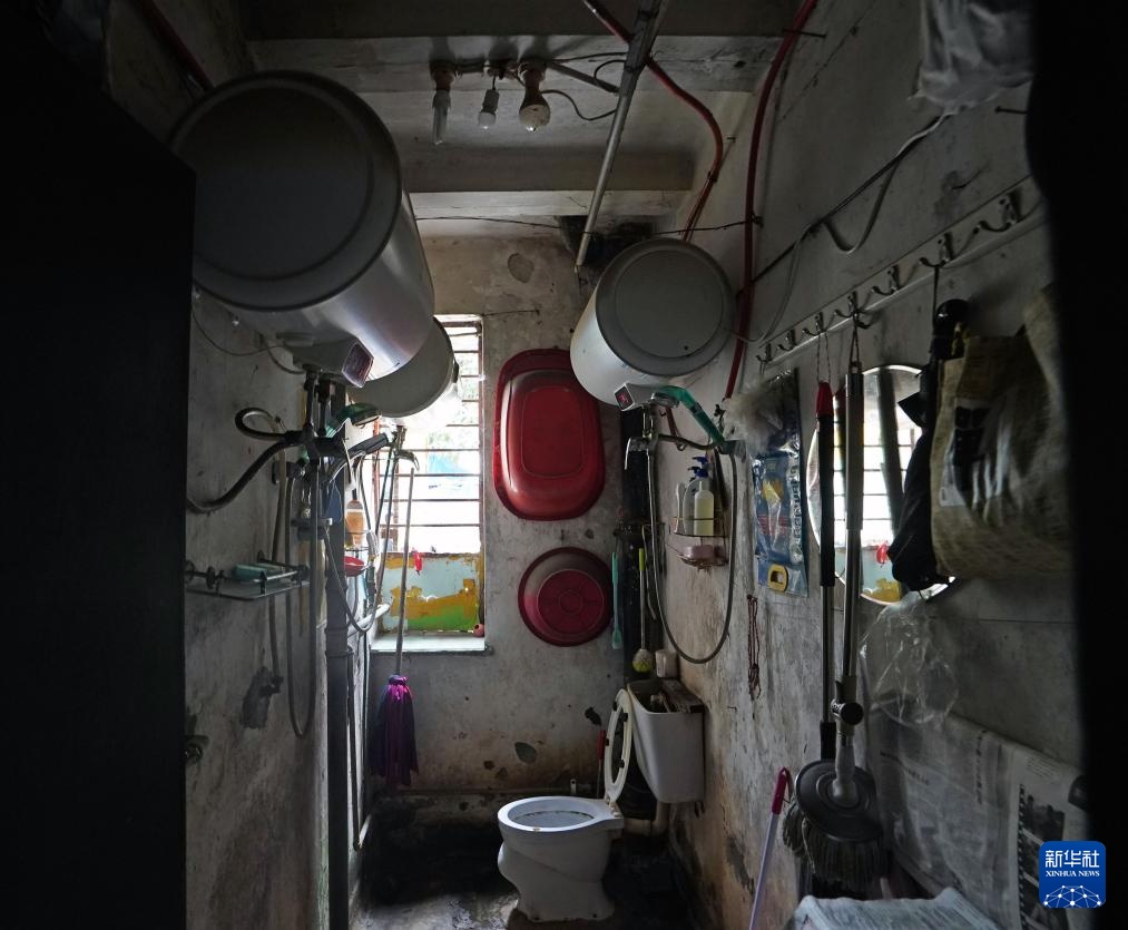 拼版照片:上图是改造前的漕溪三村小区居民共用厨房(资料照片,新华社发);下图是拆除重建后的漕溪三村小区室内独立厨房和卫生间(2025年10月23日摄,新华社记者方喆摄)。